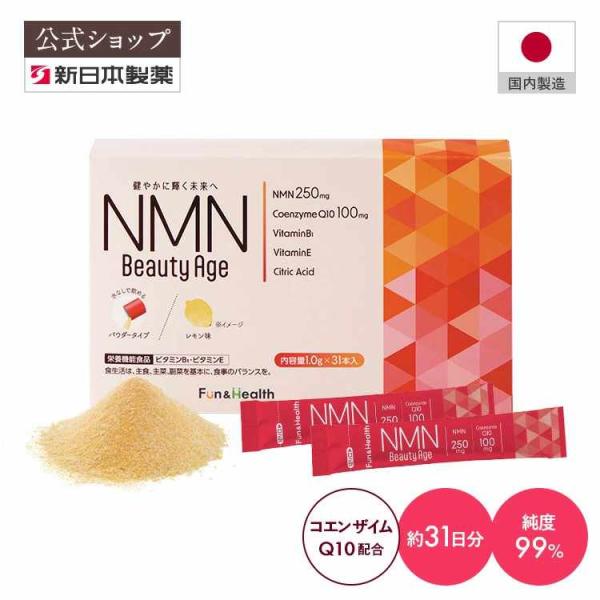 【新日本製薬公式】NMN Beauty Age 31日分 1包250mg レモン風味 サプリ サプリメント ビタミンE コエンザイムQ10 ビタミンB1 NMNサプリ 日本製 爆買