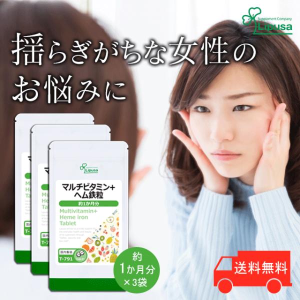 マルチビタミン+ヘム鉄粒 約1か月分×3袋 T-791-3 (240粒×3袋) サプリメント ビタミン ヘム鉄 ※2027年4月30日期限