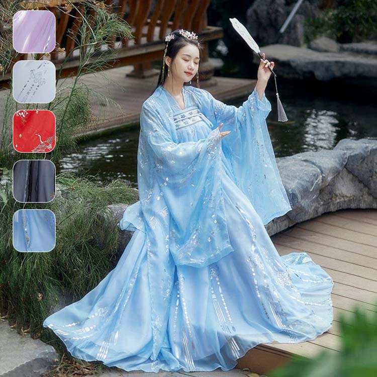 【SUPERSALE限定50%OFF!!】5色 唐装漢服 中華服舞台服装 華流ステージコスプレ衣装 中国古代宮廷風コスプレ衣装 イベント 学園祭パーティーダンス衣装 チャイナドレス 写真撮影ドレス 演出服 振袖 引き裾 唐朝貴妃服 送料無料