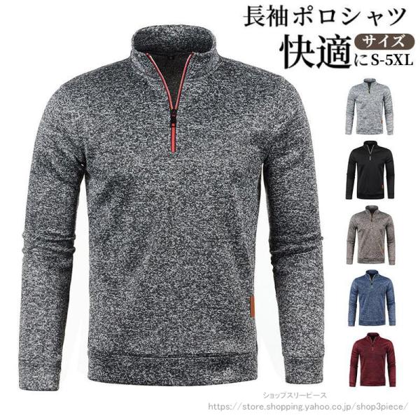 ゴルフウェア ポロシャツ メンズ 長袖 ハーフハイネック ゴルフシャツ スポーツ 暖か 秋冬 厚手 防寒 ゆったり トップス 紳士服 通勤 カジュアル おしゃれ