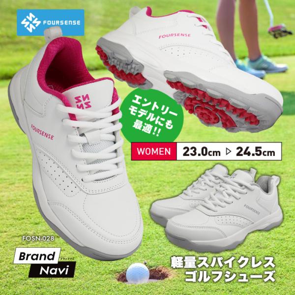 ゴルフシューズ レディース スパイクレス 軽量 プロ アマ シニア エントリー 初心者 入門 ホワイト ピンク フォーセンス FOURSENSE