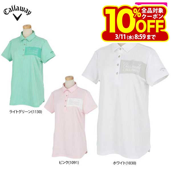 【50%OFF・半額以下・SALE・セール】春 夏 モデル Callaway GOLF キャロウェイ ゴルフウェア C24134203 ストライプ ジャカード 半袖 シャツ ポロシャツ [吸汗速乾性、UPF15] (レディース)