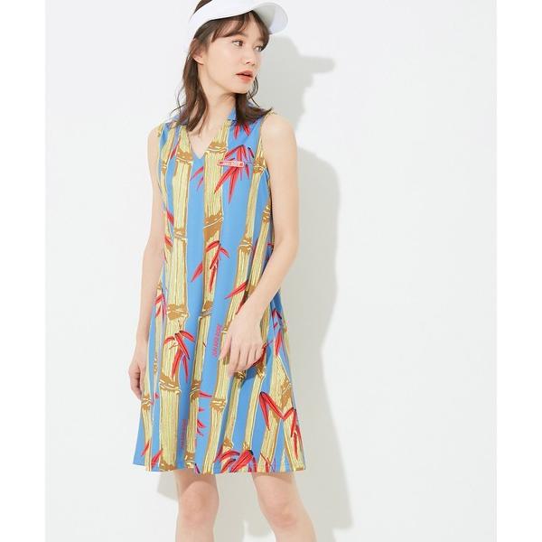 ワンピース 「UV」「吸水速乾」バンブー柄プリントノースリーブワンピース