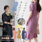 シャツワンピース Aライン ロング マキシワンピース マーメイドライン 体型カーバー エレガント 半袖 五分袖 長