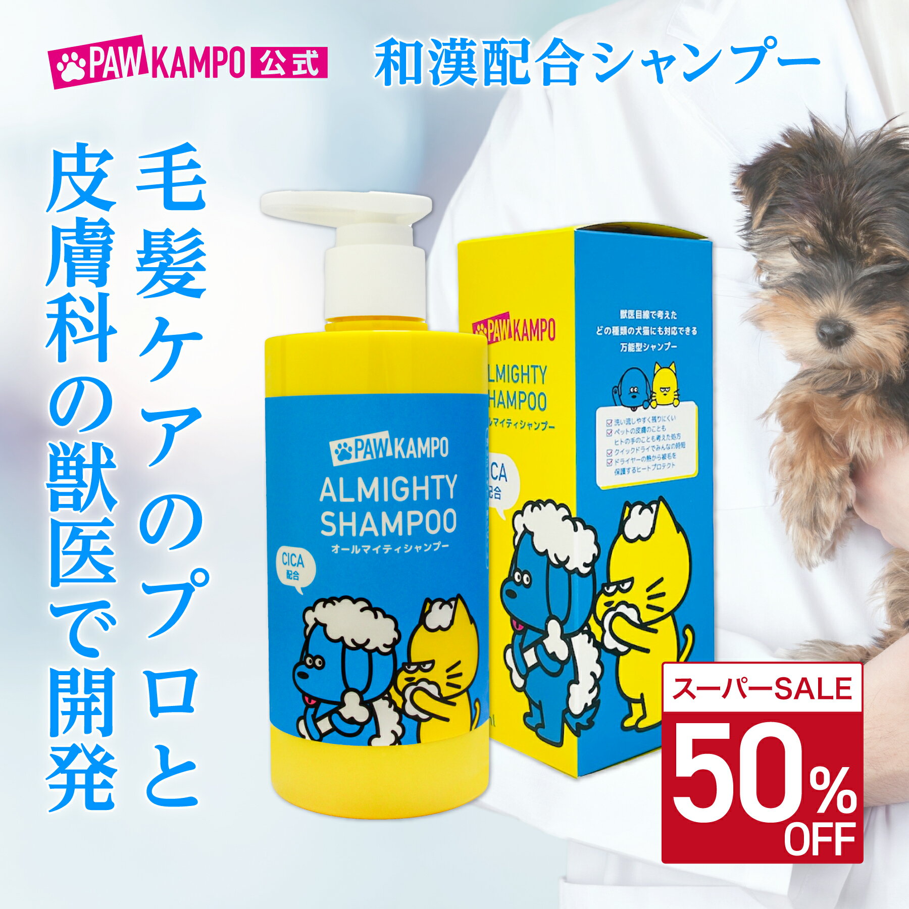\スーパーSALE限定50%OFF!!/【公式】PAWKAMPO(パウカンポー)<犬猫用>オールマイティシャンプー 300mL / 単品 全ての種類の犬猫用万能型シャンプー 洗い流しやすい 泡切れが良い クイックドライ ペットにも和漢 CICA配合 皮膚科の獣医師監修
