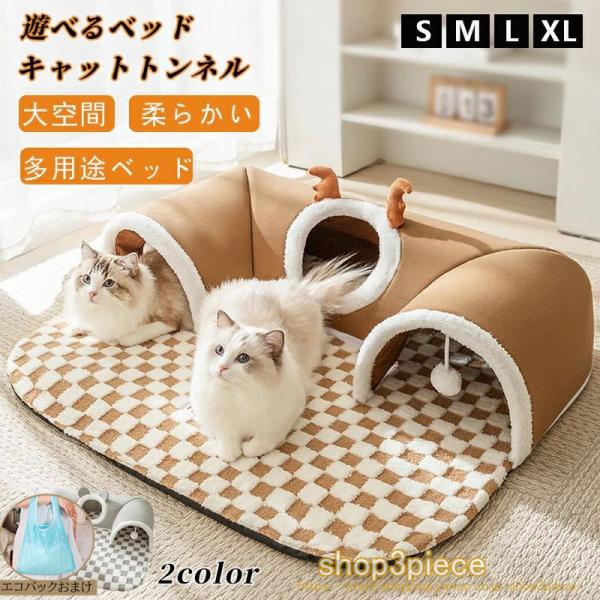 2WAY 猫ベッド 猫 トンネル 犬 ベッド ふわふわ ペットマット 滑り止め ペットベッド 可愛い ペットハウス キャットマット 小型犬用 クッション 子猫 洗える 冬