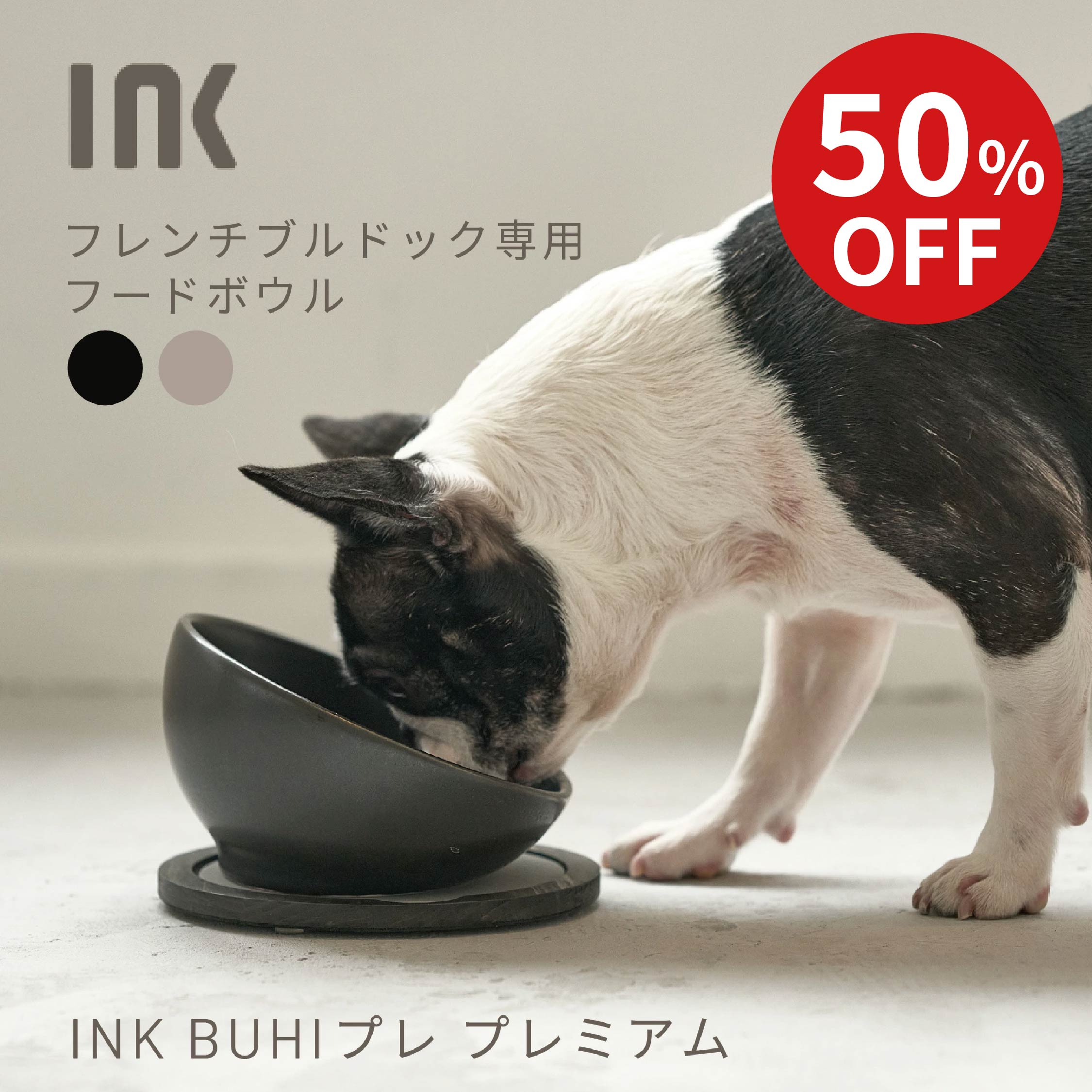 【スーパーセール50%OFF!】犬 猫 食器 餌皿 エサ皿 フードボウル フレンチブルドック ペット食器 ペット容器 小型犬 日本製 有田焼 磁器 木製マット付 マットブラック グレージュ INK BUHIプレ プレミアム ハリオ HARIO 公式ショップ
