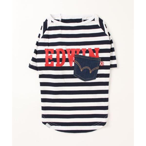 犬 服 EDWIN/デニムポケットボーダーTシャツ中型犬サイズ