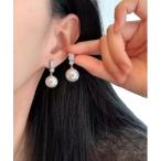 イヤリング パール×ビジュー ドロップイヤリング/ノンホール レディース メンズ