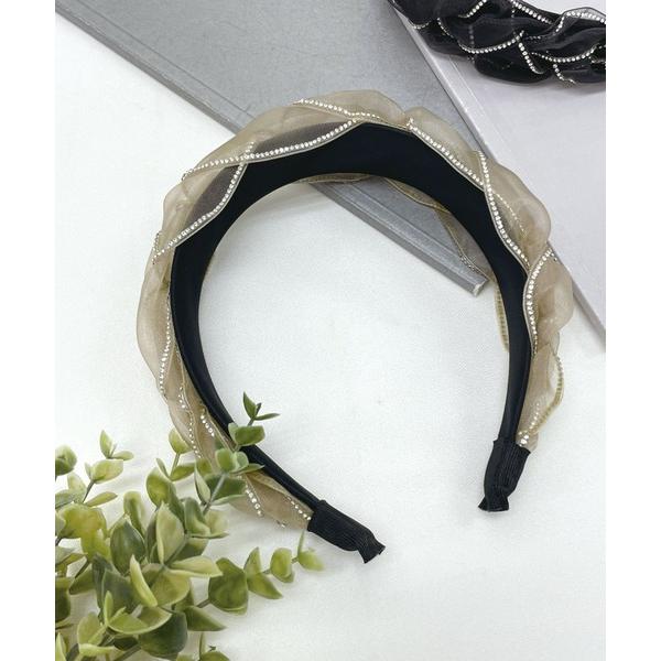 カチューシャ チュールツイストストーンワイドカチューシャ