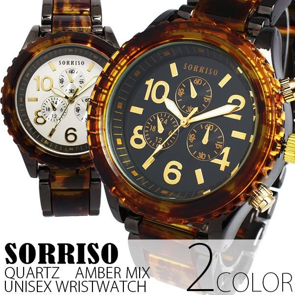 腕時計 メンズ腕時計 SORRISO 日本製シチズンミヨタムーブ べっ甲 フェイクダイヤル フェイククロノグラフ メタルベルト CITIZEN MIYOTA クォーツ 男性用 SRHI14