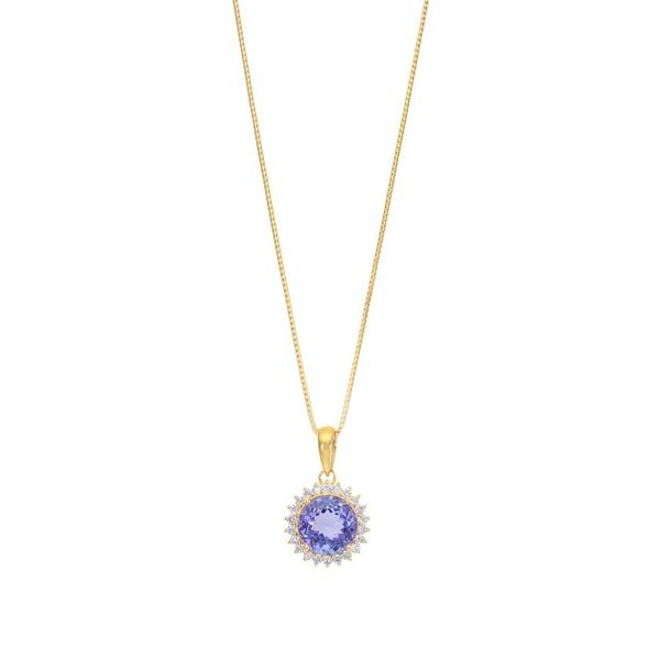 ネックレス K18 ダイヤモンド ヘイロー/取り巻き タンザナイト ネックレス レディース メンズ