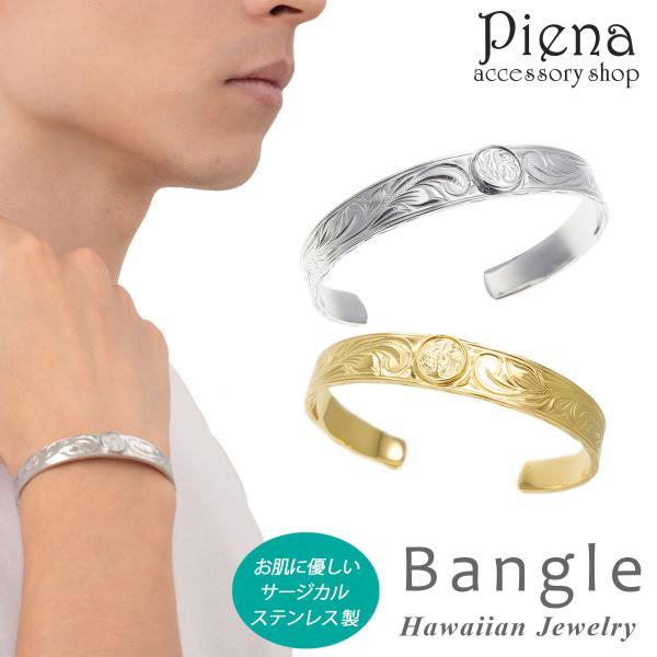 バングル メンズ サージカルステンレス製 ハワイアンジュエリー ハワジュ 波 スクロール 甲丸 ナル プルメリア お肌に優しい 金属アレルギー対応 爆買