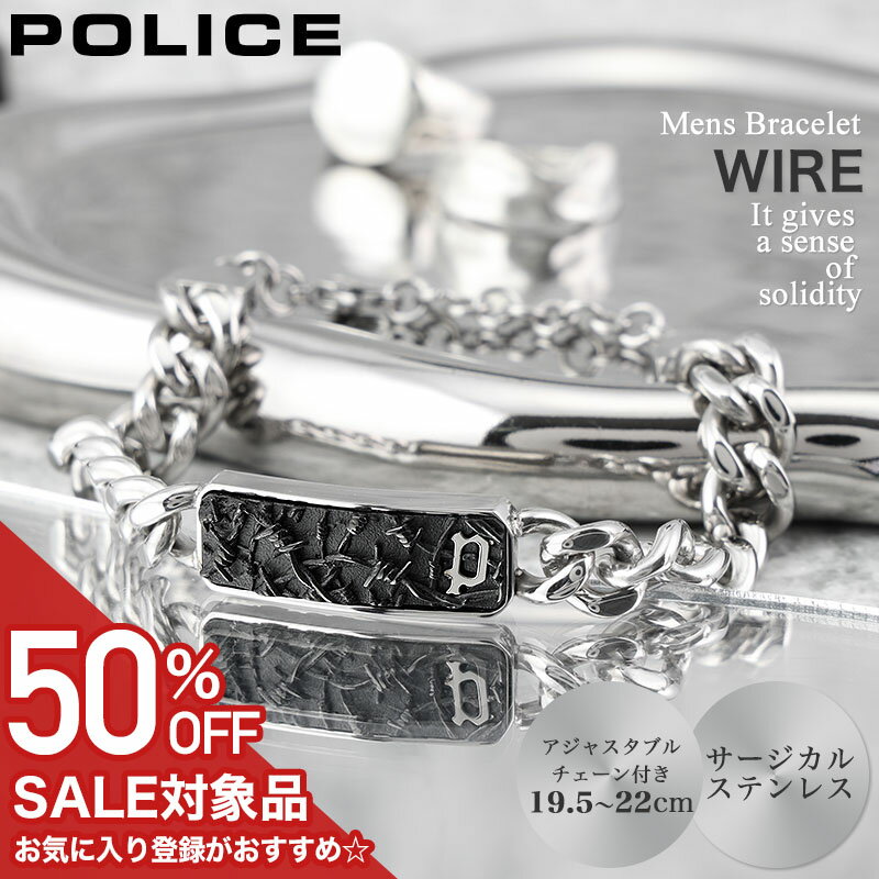 【50%OFF半額 \6,600-円引】ポリス アクセサリー POLICE ブレスレット ワイヤ WIRE メンズ メンズブレスレット メンズアクセサリー 喜平チェーン シルバー ブラック 男性 金属アレルギー サージカルステンレス ファッション かっこいい GB0033801 おしゃれ プレゼント