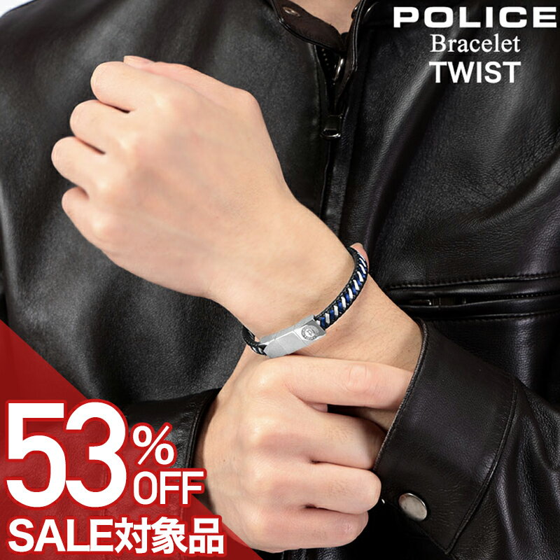 【53%OFF半額 \6,380-円引】メンズブレスレット ポリス アクセサリー POLICE ブレスレット ツイスト TWIST メンズ 編み込み レザー ブルー ブラック ホワイト シルバー ステンレス 男性 かっこいい GB0034001 定番 人気 おすすめ おしゃれ ブランド プレゼント ギフト