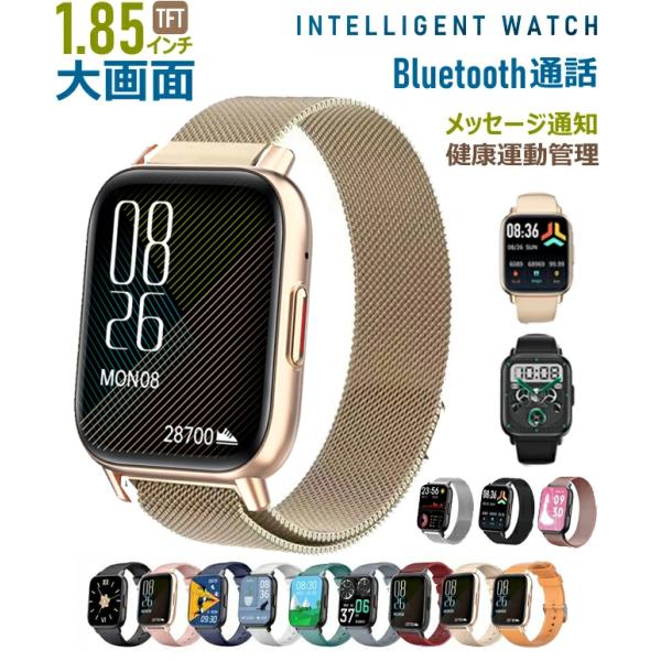 スマートウォッチ 通話機能 レディース メンズ 24時間健康管理 1.85インチ 歩数計 消費カロリー 心拍数 着信通知 睡眠モード 天気予報 母の日