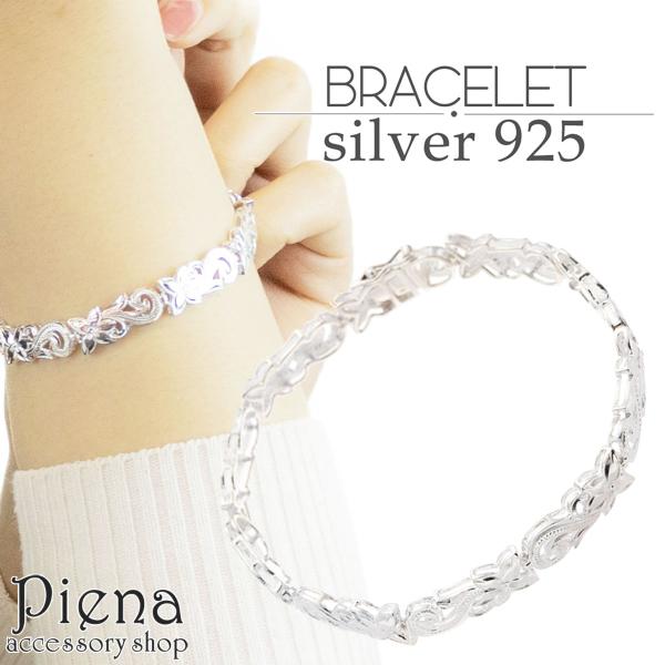 ブレスレット シルバー925 ハワイアンジュエリー 彫刻 プルメリア 波 永遠の愛 幸福 爆買