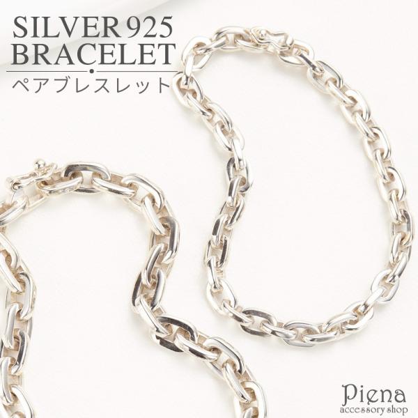 ペアブレスレット メンズ レディース シルバー925製 極太あずきチェーン カットアズキ 小豆 シンプル 爆買