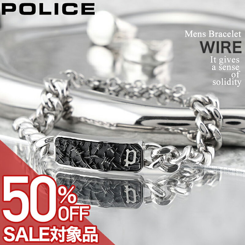 【50%OFF半額 6600円引】 ポリス アクセサリー POLICE ブレスレット ホワイトデー プレゼント ワイヤ WIRE メンズ メンズブレスレット メンズアクセサリー 喜平チェーン シルバー ブラック 男性 金属アレルギー サージカルステンレス ファッション GB0033801 定番 おすすめ