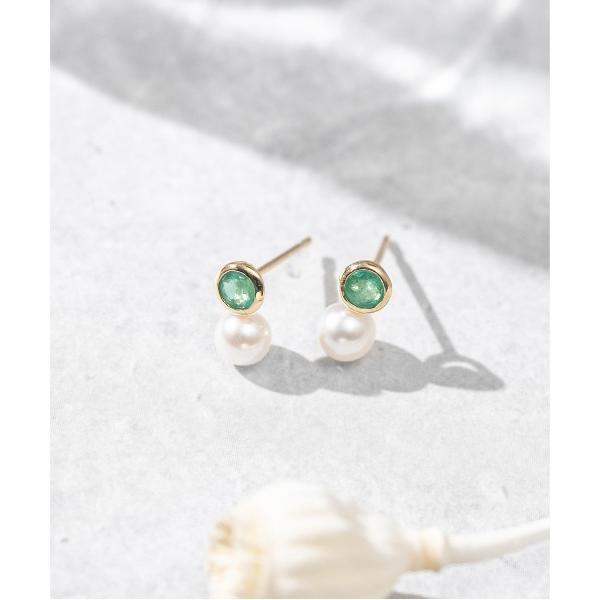 ピアス 「誕生石」K10 アコヤパール×カラーストーン ピアス レディース メンズ