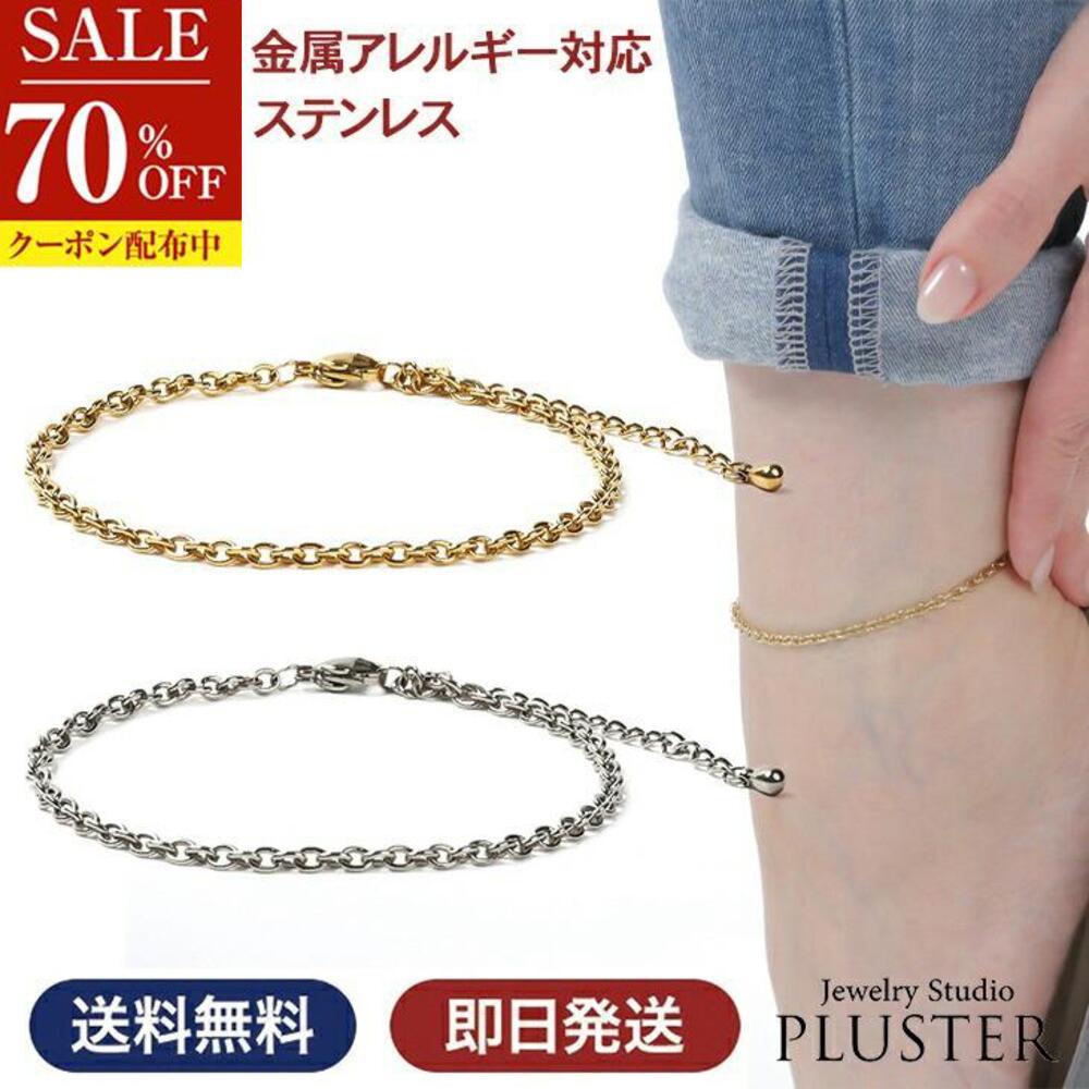 70%OFF アンクレット レディース チェーン つけっぱなし ステンレス 304 チェーンアンクレット 金属アレルギー ゴールド シルバー 太め イエロー ホワイト ジュエリー アクセサリー アレルギー シンプル プレゼント 女性 誕生日 ギフト