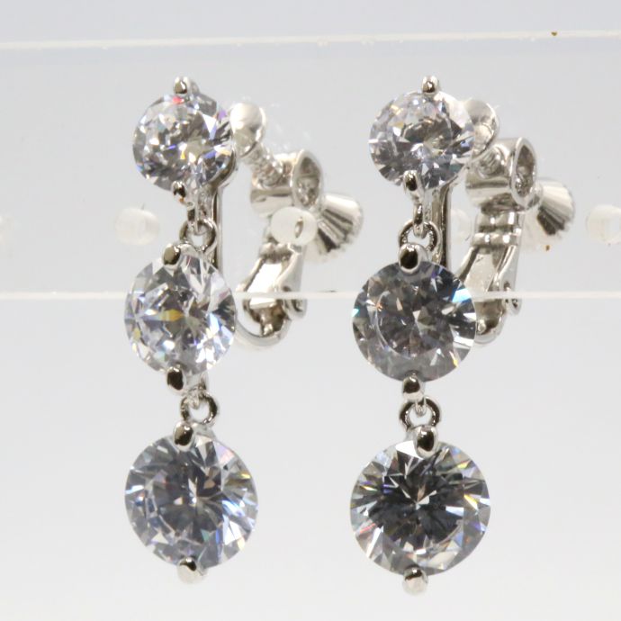 期間限定50%OFF 全品 送料無料 イヤリング キュービックジルコニア 3連 ステージ アクセサリー カラオケ ギフト プレゼント dr19e-24