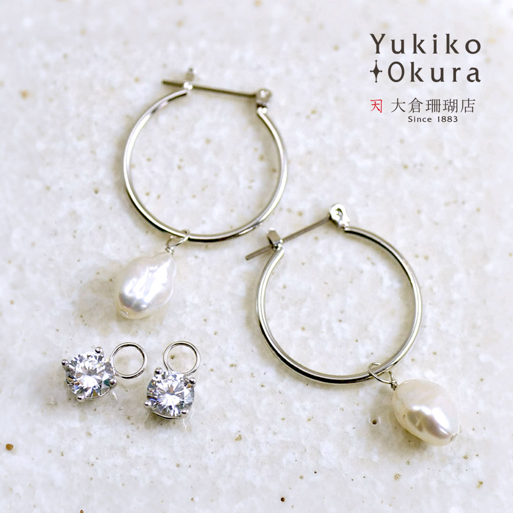 【50%OFF!BLACK FRIDAYセール】キュービックジルコニア 淡水パール イヤリング ピアス フープ 3WAY チェンジャブル 天然石 ユキコ オオクラ ブランド レディース ジュエリー 送料無料 6月誕生石