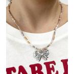 ネックレス YU-KA:リボンビーズネックレス レディース