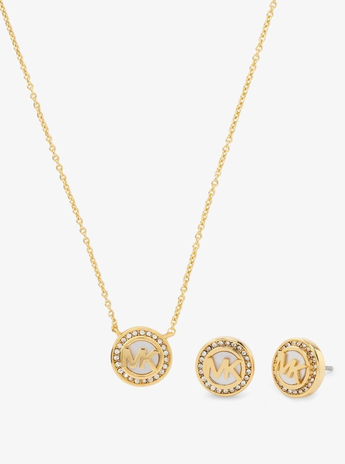 【SALE/62%OFF】MICHAEL KORS サークルロゴ マザーオブパール ペンダント & スタッド ピアス セット マイケルコース マイケル・コース アクセサリー・腕時計 ネックレス ゴールド【送料無料】