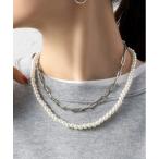 ネックレス パール&チェーン ロングコンビネックレス レディース