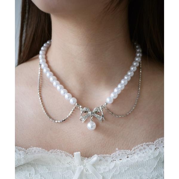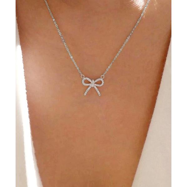 ネックレス ラインストーンリボンモチーフ ネックレス レディース