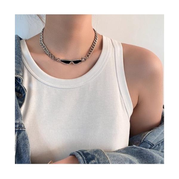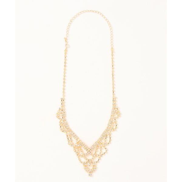 ネックレス rhinestone metal plate chain necklace / ラインストーンメタルプレートチェーンネックレス レディース