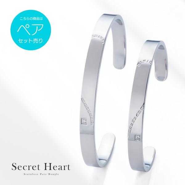 ペア バングル 金属アレルギー対応 ステンレス ペアバングル ローマ数字 円周率 ハート ペアアクセサリーつけっぱなし sbr0146