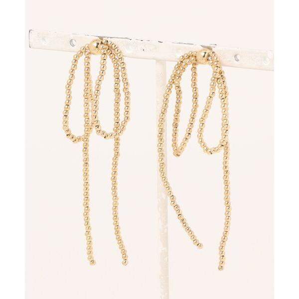 ピアス 両耳用 ビーズダブルリボンピアス レディース