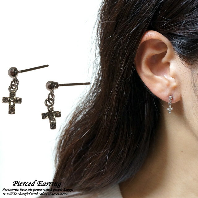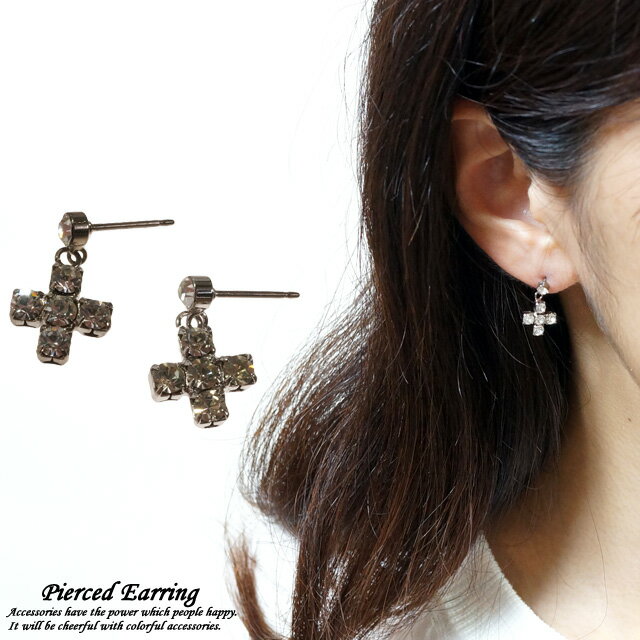 \半額★50%OFF/レディースピアス クロス 十字架 キラキラ きらきら ラインストーン サージカルステンレスポスト スタッドピアス 金属アレルギー対応