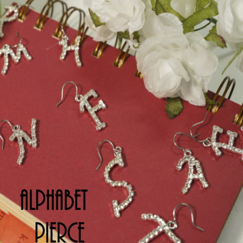 \半額★50%OFF/ピアス 金属アレルギー キラキラのラインストーンでできたアルファベットのピアス サージカルステンレスピアス イニシャル レディースピアス フック(チタン/樹脂)orイヤリングへの変更OK 21'10