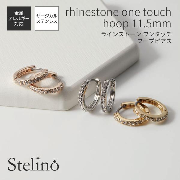 ラインストーン キャッチレス 金属アレルギー対応 輝く 綺麗 プレゼント フープピアス レディース 両耳用 ニッケルフリー サージカルステンレス製ポスト