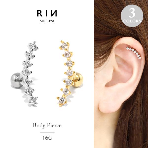 ボディピアス 軟骨ピアス 16G ヘリックス クリア ジュエル キラキラ ステンレス 耳たぶに沿う 片耳用