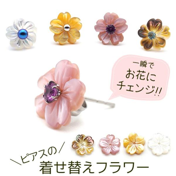 今あるピアスがおしゃれに変身!お花の着せ替え ピアス Lサイズ 10mm シェル フラワー 貝 イメチェン 付け替え 2Way 2倍楽しめる ケース&巾着つき