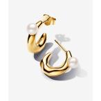 ピアス パール & オーガニカリー シェイプド ゴールド フープ ピアス レディース