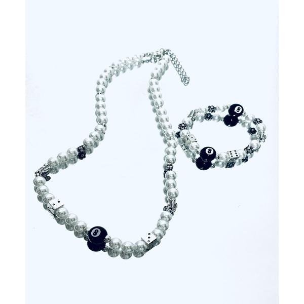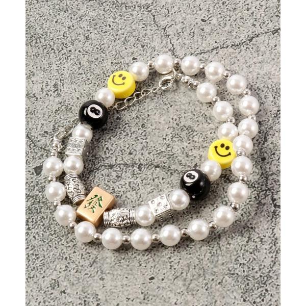 ブレスレット 1004ST 8ボール ビーズ パール 2連 ブレスレット メンズ レディース