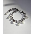 ブレスレット 金属アレルギー対応 Fケーブルチェーン パール石モチーフ マンテルブレスレット サージカルステンレス レディース