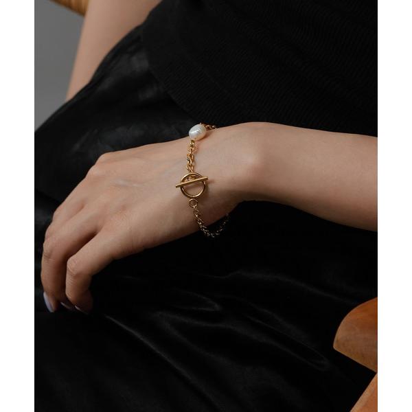 ブレスレット 「ORLEAN」 デザインチェーンマンテルブレスレット パール ニュアンス サージカルステンレス レディース