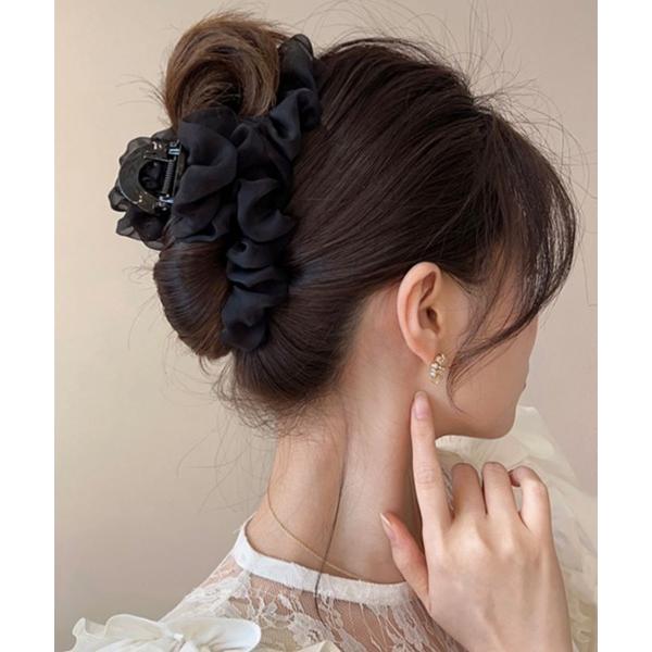 ヘアクリップ リボンヘアクリップ 大きめ黒 レディース