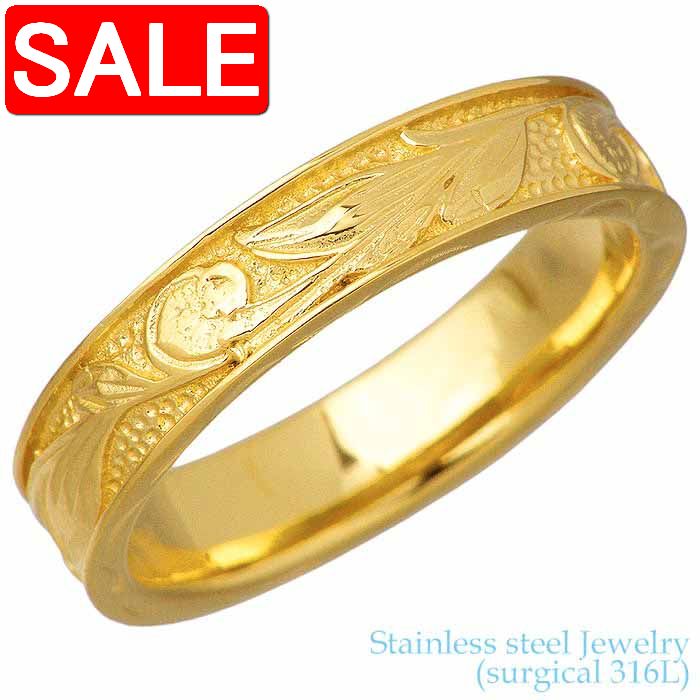 【スーパーSALE 50%OFF!】 ステンレス ハワイアンジュエリー ハワジュ リング 金属アレルギー対応 指輪 アクセサリー 7〜21号 ジュエリー レディース メンズ K24 医療用サージカル316L GRSS550K24