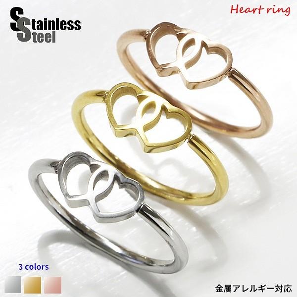ステンレス リング (64)ダブルハート 選択可 銀色 金色 ピンクゴールド メイン 金属アレルギー対応 メンズ レディース 送料無料 指輪