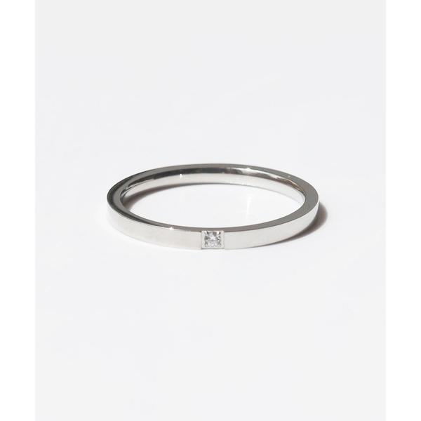 指輪 リング 金属アレルギー対応 2mm一粒ジルコニアシンプルステンレスリング レディース