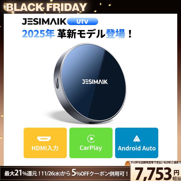 「ブラックフライデー」HDMI入力対応 高画質 JESIMAIK CarPlay AIBOX UTV スマホミラリング CarPlay Android Autoワイヤレス化 アフレーム Switch