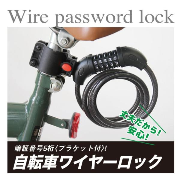 送料無料 自転車ワイヤーロック 暗唱番号5桁(ブラケット付) 自転車 ロック