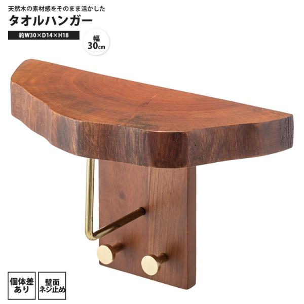 天然木 タオルハンガー 幅30 おしゃれ 壁面 ネジ止め 棚 ラック タオル掛け JW-223BR タオルハンガー 爆買